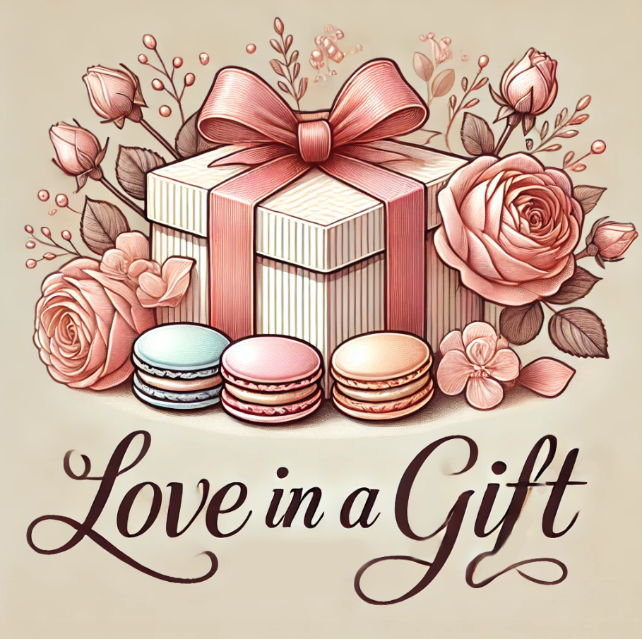 The smoothness of macarons paired with carefully curated gifts, the perfect present for someone special